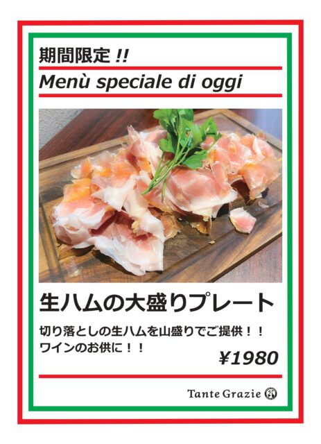 ☆期間限定!サービスメニュー「生ハムの大盛りプレート」